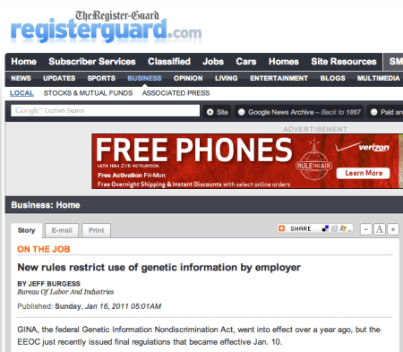 GINA, the federal Genetic Information Nondiscrimination Act, went into effect over a year ago, but the EEOC just recently issued final regulations that became effective Jan. 10.