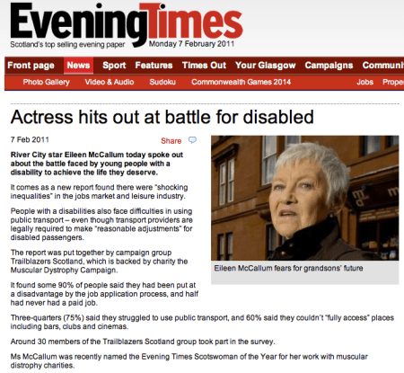 The report was put together by campaign group Trailblazers Scotland, which is backed by charity the Muscular Dystrophy Campaign.