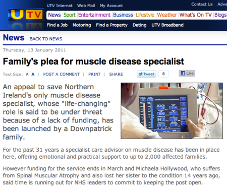 Lives ‘will be lost and families torn apart’ if Northern Ireland loses muscle disease advisor