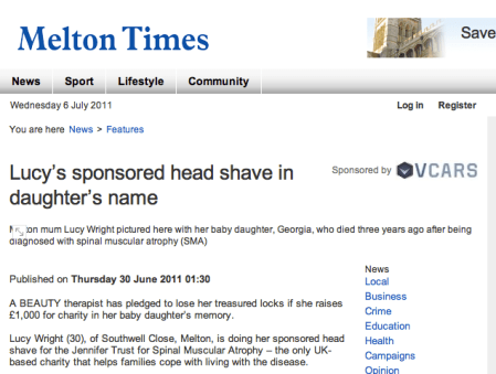 Lucy Wright’s daughter Georgia died from muscle condition spinal muscular atrophy (SMA), aged seven months, in August 2008.