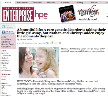 HIGH POINT – From their living room, Nathan and Christy Golden can hear their daughter, 2½-year-old Callie, cackling joyously in another room.