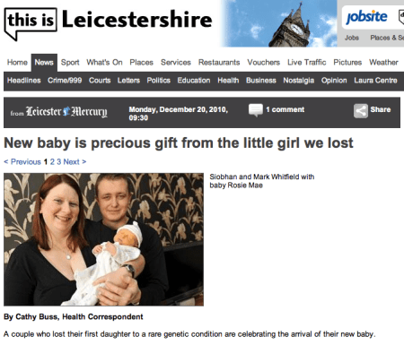 Rosie Mae Whitfield, was delivered by Caesarian section at Leicester General Hospital.